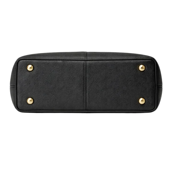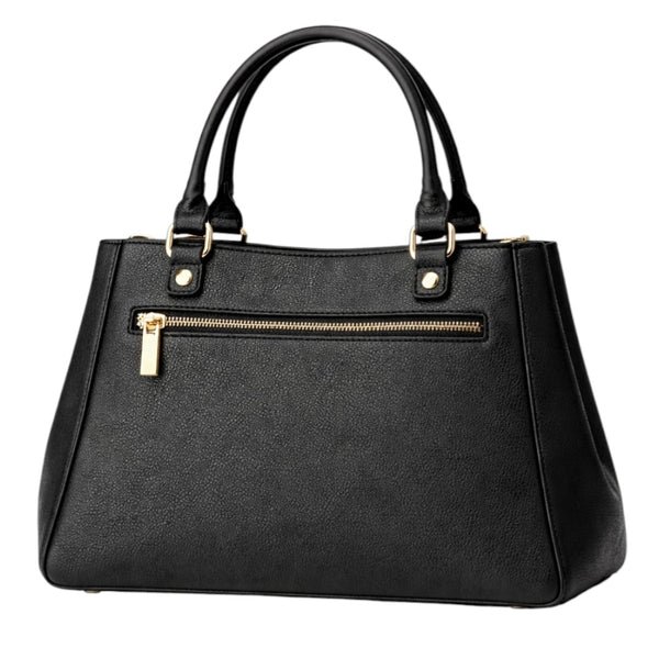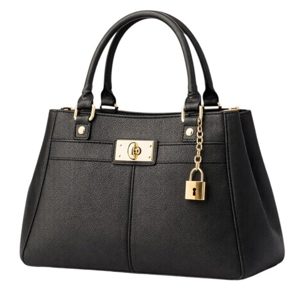 This handbag features sturdy dual top handles for comfortable hand carrying and an adjustable shoulder strap for shoulder or crossbody use. The stylish gold-tone turn-lock closure and decorative lock charm add a fashionable and elegant touch. The spacious interior provides multiple compartments to keep daily essentials organized and easily accessible.