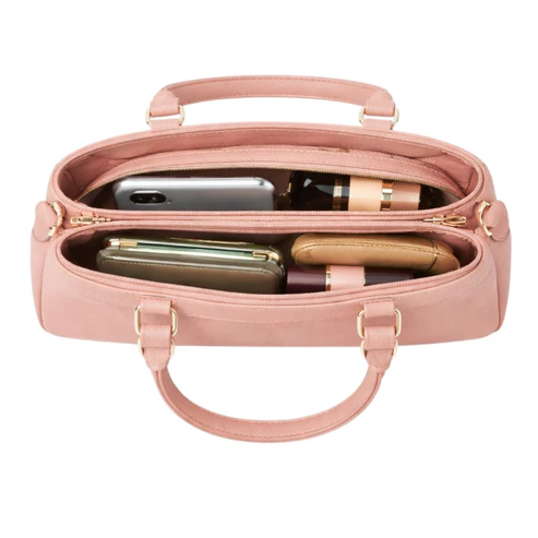 This handbag features strong dual handles for comfortable hand carrying and an adjustable shoulder strap for shoulder or crossbody use. The front zipper pocket with gold-tone hardware enhances both style and practicality. The spacious interior with multiple compartments allows you to keep daily essentials organized.